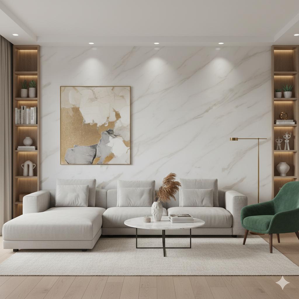 Além do apelo estético, o painel marmorizado oferece praticidade e desempenho técnico. Sua aplicação garante uniformidade, fácil manutenção e alta durabilidade, sendo uma solução versátil para diferentes tipos de projetos residenciais e comerciais.