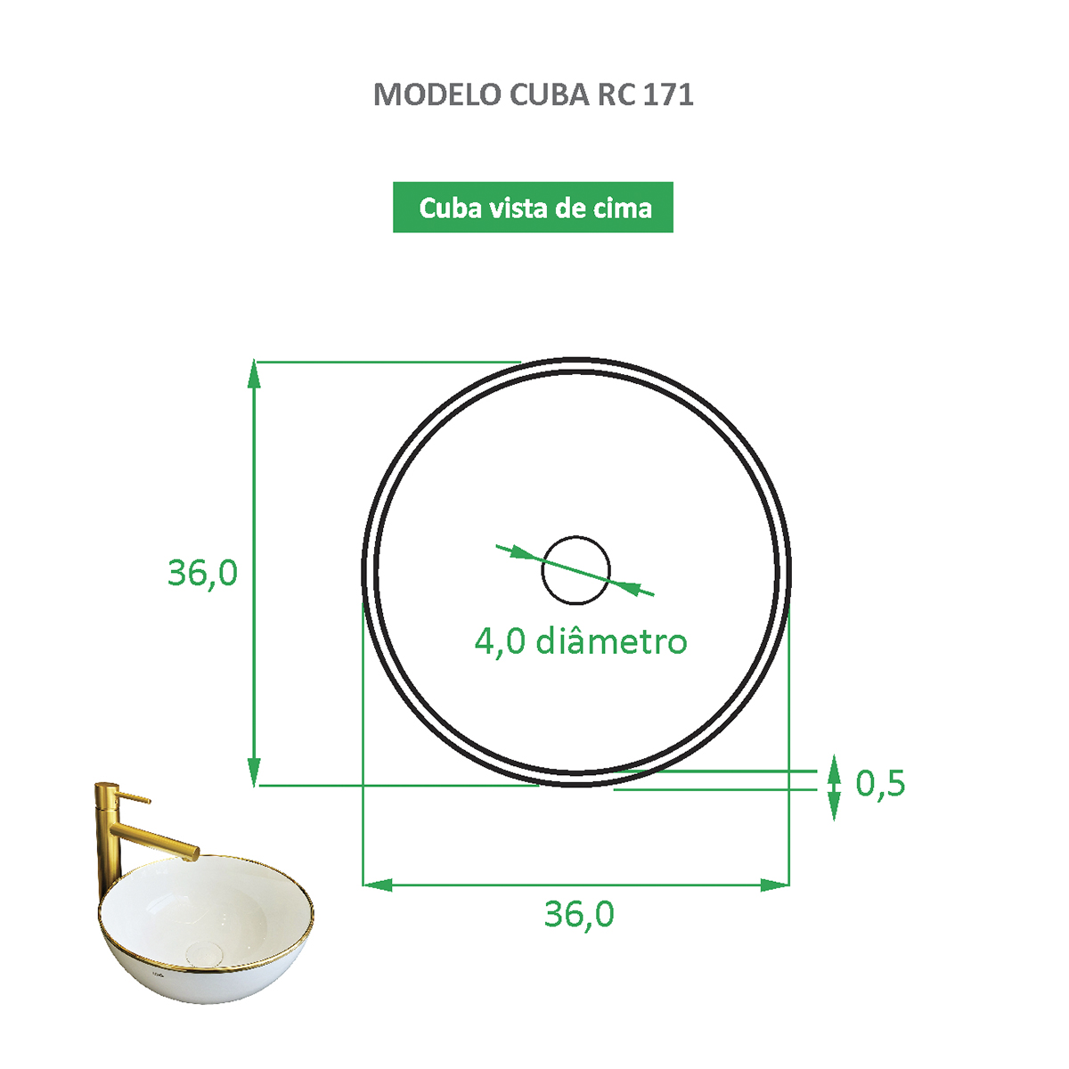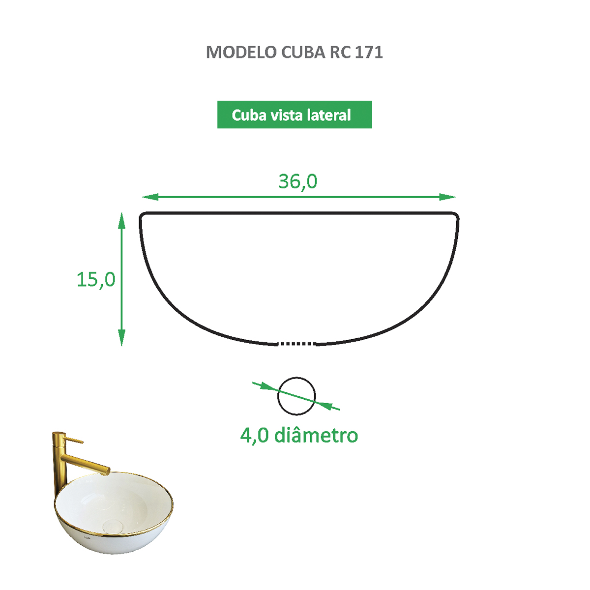 Limpeza: Orientamos que a limpeza seja feita com pano úmido, água e sabão neutro. Não deve ser utilizado produtos químicos nem abrasivos, pois danificará a pintura da cuba.