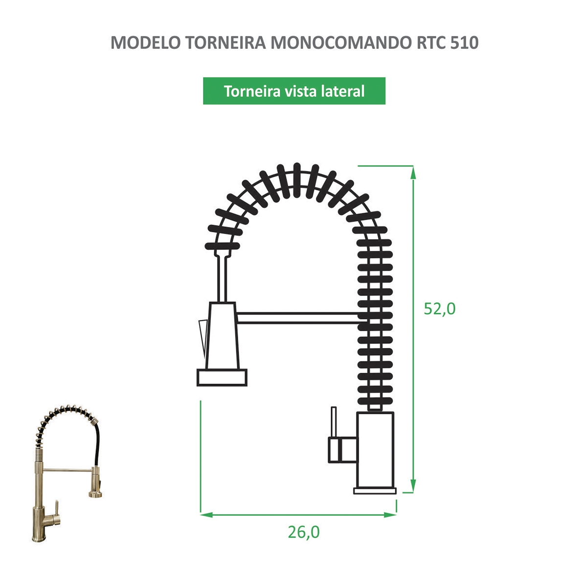 A Torneira de cozinha RTC 510 Escovada vem com design contemporâneo, para uso em cozinhas domésticas ou industriais. Um modelo para ser instalado em bancadas ou diretamente na cuba. Podendo também ser utilizada em cubas duplas pois possui rotação de 360º.